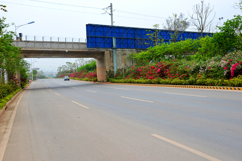 該道路設計標準為城市主干道,道路全長約4.8公里。設計道路寬度為60米,雙向8車道,橫斷面采用四塊板形式,路面采用瀝青混凝土路面,設計速度為60千米/小時。主要包括道路、橋涵、排水、照明、綠化、交通工程等建設項目。項目總投資6.5億元,其中建安費3.2億元。