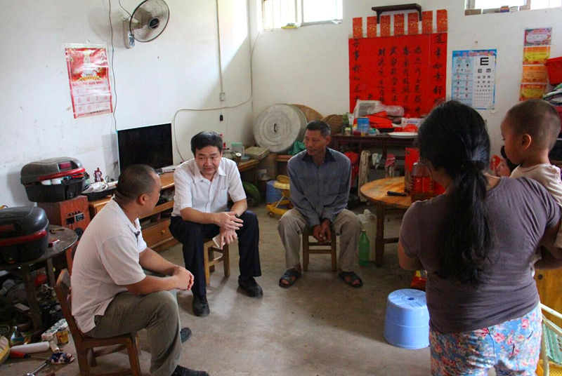 9月7日上午,在河浪村駐村第一書記覃瑞肖和村委會工作人員的帶領(lǐng)下,綠港集團黨委精準扶貧工作組分為6個小組,分別慰問了河浪村的26戶貧困戶,分別給貧困戶送去了大米和花生油等慰問品,提前祝他們中秋節(jié)快樂。在貧困戶韋啟揮老人家里,綠港集團財務(wù)總監(jiān)關(guān)月娥親切地與韋啟揮老人拉起了家常?!凹依镉袔桩€地?”“家里甘蔗今年的長勢好不好?”“家里孫兒孫女上學的學習成績好不好?”等等。當了解到韋啟揮老人的兒子通過政府針對扶貧小額免息貸款,積極開展產(chǎn)業(yè)化種植,家里的經(jīng)濟情況在逐步好轉(zhuǎn)時,關(guān)總監(jiān)高興地鼓勵老人的兒子多開動腦筋,創(chuàng)新思路,爭取早日脫貧。在貧困戶梁蔭坎的家中,集團公司總經(jīng)理助理黃麗琴親切地與梁蔭坎及其年邁的母親交談,看到梁蔭坎把自己的小樓房收拾得干干凈凈,了解到梁蔭坎的種養(yǎng)業(yè)豐收在即,為他感到高興,同時告訴他如果在銷路上有什么困難,綠港集團將想辦法幫助解決。在貧困戶梁祖然和梁祖旭家里,看到建筑工人正在給他們家蓋房子時,黃總助關(guān)切地詢問是否申請到危改房補助、補助夠不夠等問題,得知蓋房子能領(lǐng)到20000多元的補助資金時,黃總助心里踏實了好多。在貧困戶盧創(chuàng)旭家里,嘉通公司總經(jīng)理陳志杰與盧創(chuàng)旭一家圍坐在一起,共同探討早日脫貧的道路……這次下村開展精準扶貧工作,工作組組員們對照“八有一超”的標準,認真梳理并記錄了對口幫扶貧困戶家庭的實際情況,為下一步開展精準扶貧工作做好準備。