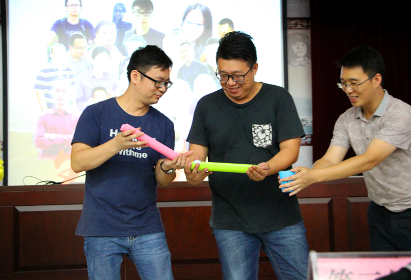 既然是集體過生日,自然少不了有趣歡樂的集體游戲,在大家的歡聲笑語中,“前世隊(duì)”通過隊(duì)員的齊心協(xié)力、相互配合,戰(zhàn)勝了“今生隊(duì)”,贏得切蛋糕的“屠龍刀”。最后,大家圍繞著甜蜜的生日蛋糕,齊唱生日祝福歌,一起吹蠟燭、吃蛋糕,共同度過了一次愉快而又溫馨的集體生日會(huì)。
