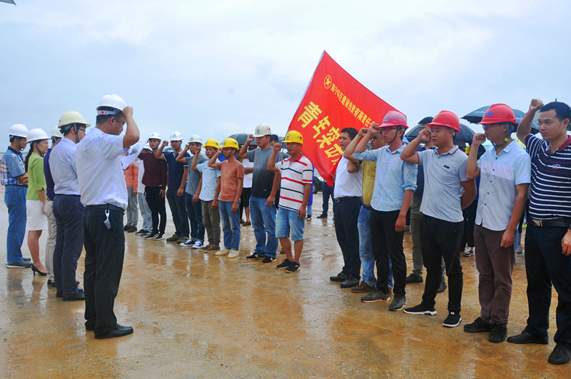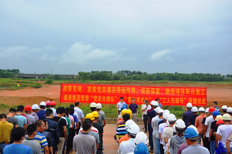 當(dāng)天,細(xì)雨蒙蒙,綠港集團(tuán)黨委書(shū)記、董事長(zhǎng)、總經(jīng)理龔國(guó)強(qiáng)在項(xiàng)目現(xiàn)場(chǎng)給參建黨員授予了“黨員先鋒隊(duì)”旗幟,給參建團(tuán)員青年授予了“青年突擊隊(duì)”旗幟,綠港集團(tuán)副總經(jīng)理、工會(huì)主席黃麗琴給吳圩空港經(jīng)濟(jì)區(qū)重點(diǎn)項(xiàng)目推進(jìn)組授予了“工人先鋒號(hào)”錦旗,激勵(lì)廣大黨員干部青年同志們要以強(qiáng)烈的政治責(zé)任感、立足本職崗位,充分發(fā)揚(yáng)不怕吃苦、勇于負(fù)重,敢打硬仗、能打硬仗的“綠港鐵軍”優(yōu)良傳統(tǒng),為吳圩空港經(jīng)濟(jì)區(qū)項(xiàng)目建設(shè)做貢獻(xiàn)。
