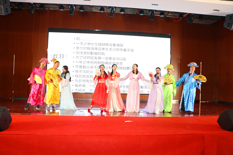 隨后,來自集團(tuán)工程管理部林重胤以及嘉通公司潘青青甜蜜獻(xiàn)唱《告白氣球》,讓大家感受到了愛情的絲絲美好。嘉通公司的《夸夸咱公司》,用三句半的表演形式唱出了綠港集團(tuán)濃濃的企業(yè)文化情愫,也展現(xiàn)了綠港員工積極、拼搏、向上的精神?!段乙鼐G港》、《聲臨其境》、《好運(yùn)來》、《愛》、《好嗨喲》等多個(gè)節(jié)目在觀眾的熱情掌聲中聯(lián)袂奉上一場(chǎng)精彩演出,整個(gè)活動(dòng)歌聲笑聲、熱烈的掌聲匯成了歡樂的海洋。集團(tuán)營銷管理中心的《四小天王齊賀歲》以及集團(tuán)計(jì)劃運(yùn)營部、紀(jì)檢監(jiān)察審計(jì)部、安全監(jiān)督部聯(lián)合帶來的《蒙面唱將猜猜猜》將活動(dòng)推向高潮,現(xiàn)場(chǎng)掌聲不斷。快板《綠港贊歌》道出了綠港集團(tuán)成立五載,綠港人用智慧和汗水所取得的成效。最后,集團(tuán)領(lǐng)導(dǎo)班子壓軸出場(chǎng),帶來詩歌朗誦《相信未來》,贏得陣陣掌聲,讓大家堅(jiān)定了信心、鼓足了干勁,對(duì)美好生活更加熱愛和向往。