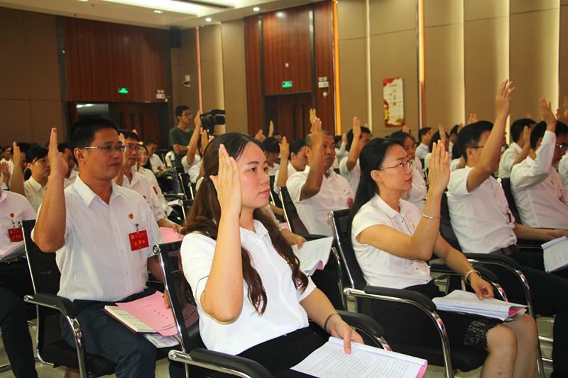 與會黨員聽取相關(guān)工作報告,并對報告事項進(jìn)行表決