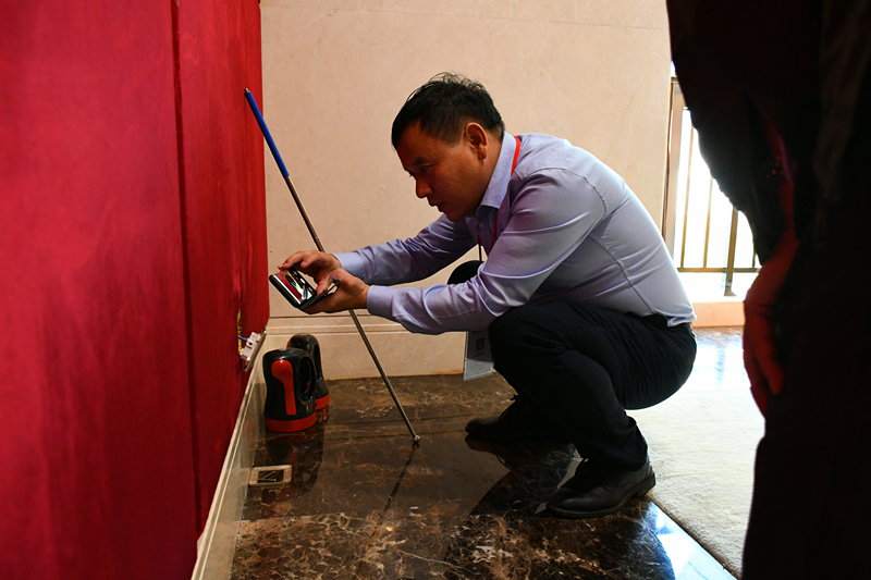 在認真聽取榮鑫公司的介紹后,復(fù)審專家組與使用單位研祥公司及建設(shè)單位綠港集團相關(guān)代表進行了單獨會談,主要了解施工建設(shè)和交付使用中的情況。隨后,復(fù)審專家對裝修現(xiàn)場進行了實地核查,尤其對電源插座內(nèi)外設(shè)置、伸縮縫處理、地面墻面空鼓情況、消防設(shè)備標(biāo)識及開合程度、衛(wèi)生間洗手臺的安裝等裝修細節(jié)展開了細致檢查,并認為各裝修分項都能嚴(yán)格按照規(guī)范要求進行施工,裝修質(zhì)量精良。最后,復(fù)審專家還對工程資料進行了檢查,一致認為項目工程資料完善,內(nèi)容分部分項,規(guī)范全面。專家組在復(fù)審總結(jié)中高度贊揚了研祥項目的裝修效果,并充分肯定了榮鑫公司在裝修中對細節(jié)質(zhì)量控制的精細化程度。