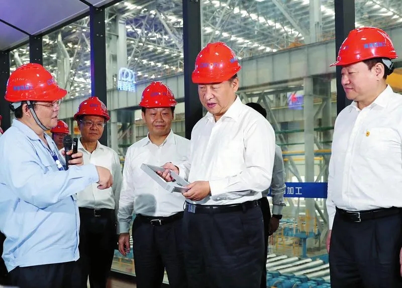 2017年4月19日至21日,中共中央總書(shū)記、國(guó)家主席、中央軍委主席習(xí)近平在廣西視察。這是2017年4月20日上午,習(xí)近平在廣西南南鋁加工有限公司了解企業(yè)生產(chǎn)情況。 新華社記者 謝環(huán)馳 攝