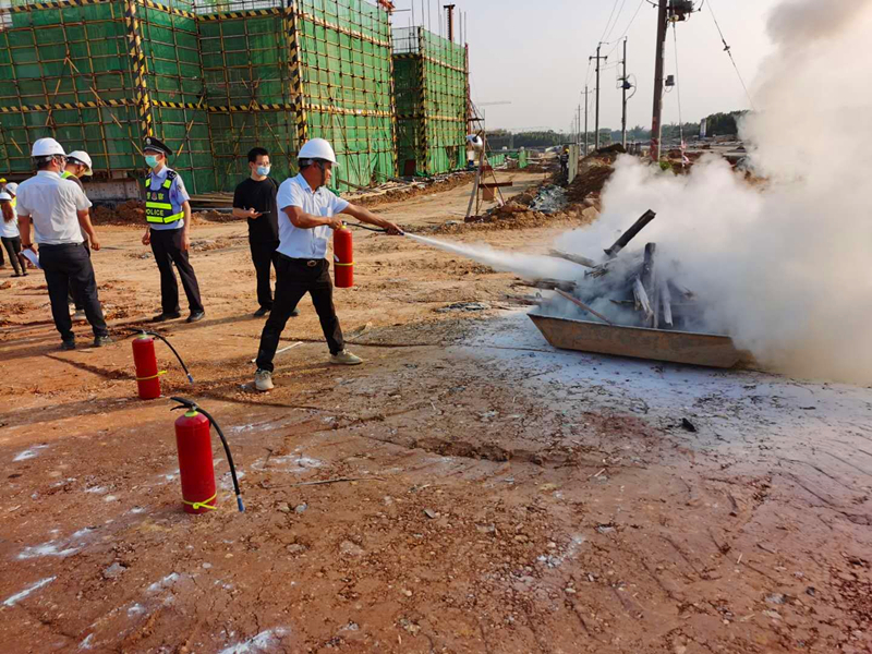 此次活動主要是模擬火災(zāi)發(fā)生后的應(yīng)急處置?;顒赢?dāng)天,發(fā)現(xiàn)險(xiǎn)情后,安全員立即上報(bào),并進(jìn)行控制和處理,并播報(bào)消防疏散通知。在總指揮的安排下,安全防護(hù)組、滅火行動組、疏散救援組、通訊聯(lián)絡(luò)組同時(shí)行動。安全防護(hù)組立刻關(guān)閉總電源閘門;滅火行動組拿取就近的消防器材進(jìn)行滅火;疏散救援組迅速引領(lǐng)工人從安全通道撤離到安全地點(diǎn);通信聯(lián)絡(luò)組將現(xiàn)場情況及時(shí)反饋給總指揮和現(xiàn)場指揮。待火勢完全撲滅,所有人員到達(dá)預(yù)定安全地點(diǎn),通訊聯(lián)絡(luò)組認(rèn)真清點(diǎn)人數(shù),確認(rèn)無任何人員傷亡及財(cái)產(chǎn)損失。演練結(jié)束后,項(xiàng)目部組織滅火器的實(shí)操練習(xí)。施工人員按照講解的動作要領(lǐng)使用了滅火器,對布置的“起火點(diǎn)”進(jìn)行有效撲救。