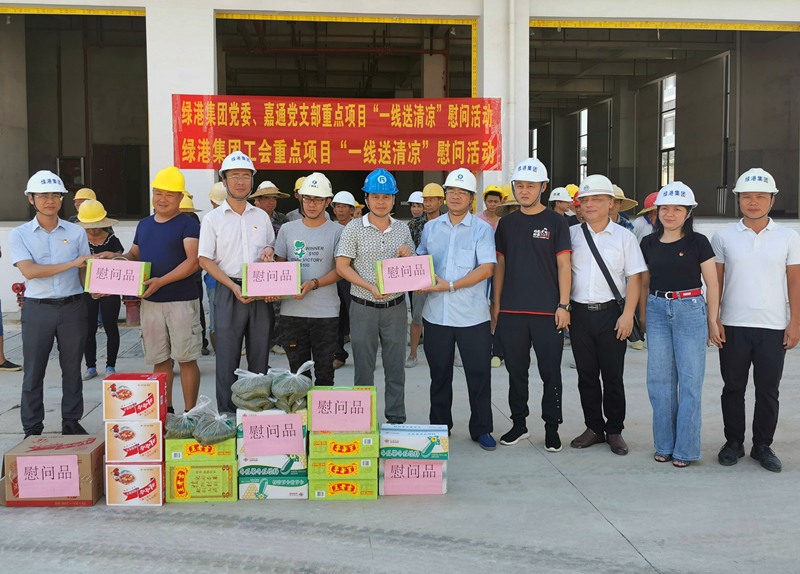 雖然已過處暑,但南寧仍然驕陽似火,酷暑難當,連日來的高溫天氣,考驗著奮戰(zhàn)在項目一線的員工們。近日,為切實維護好職工安全健康權益,保障項目一線工人的身體健康,綠港集團黨委和工會開展了綠港集團2020年重點項目“一線送清涼”慰問活動,走訪慰問奮戰(zhàn)在高溫一線的工作人員,為奮戰(zhàn)在一線的員工們送去了絲絲清涼,獻上一份誠摯的關懷。